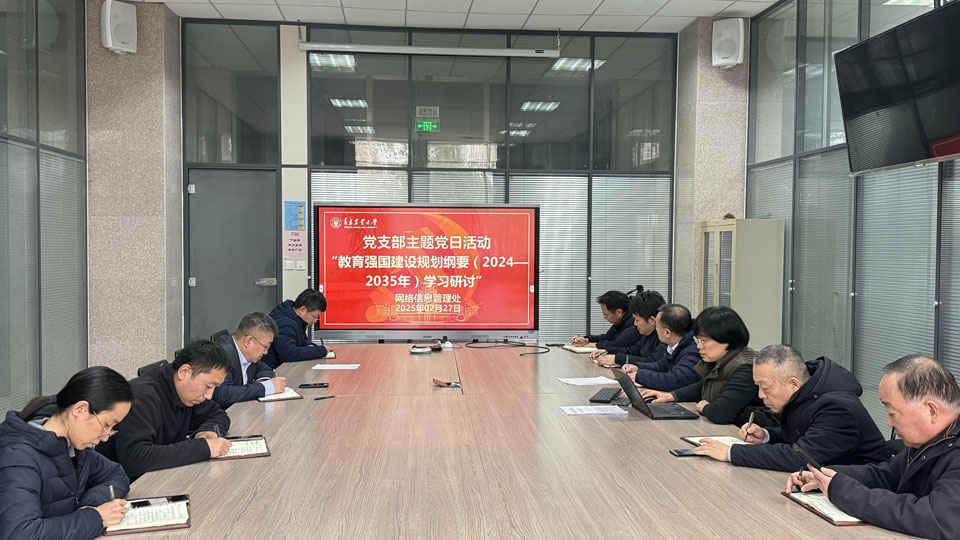 2月27日下午,网络信息管理处党支部开展“《教育强国建设规划纲要(2024-2035年)》学习研讨”主题党日活动。活动由党支部书记牟肖光主持,全体人员参加活动。