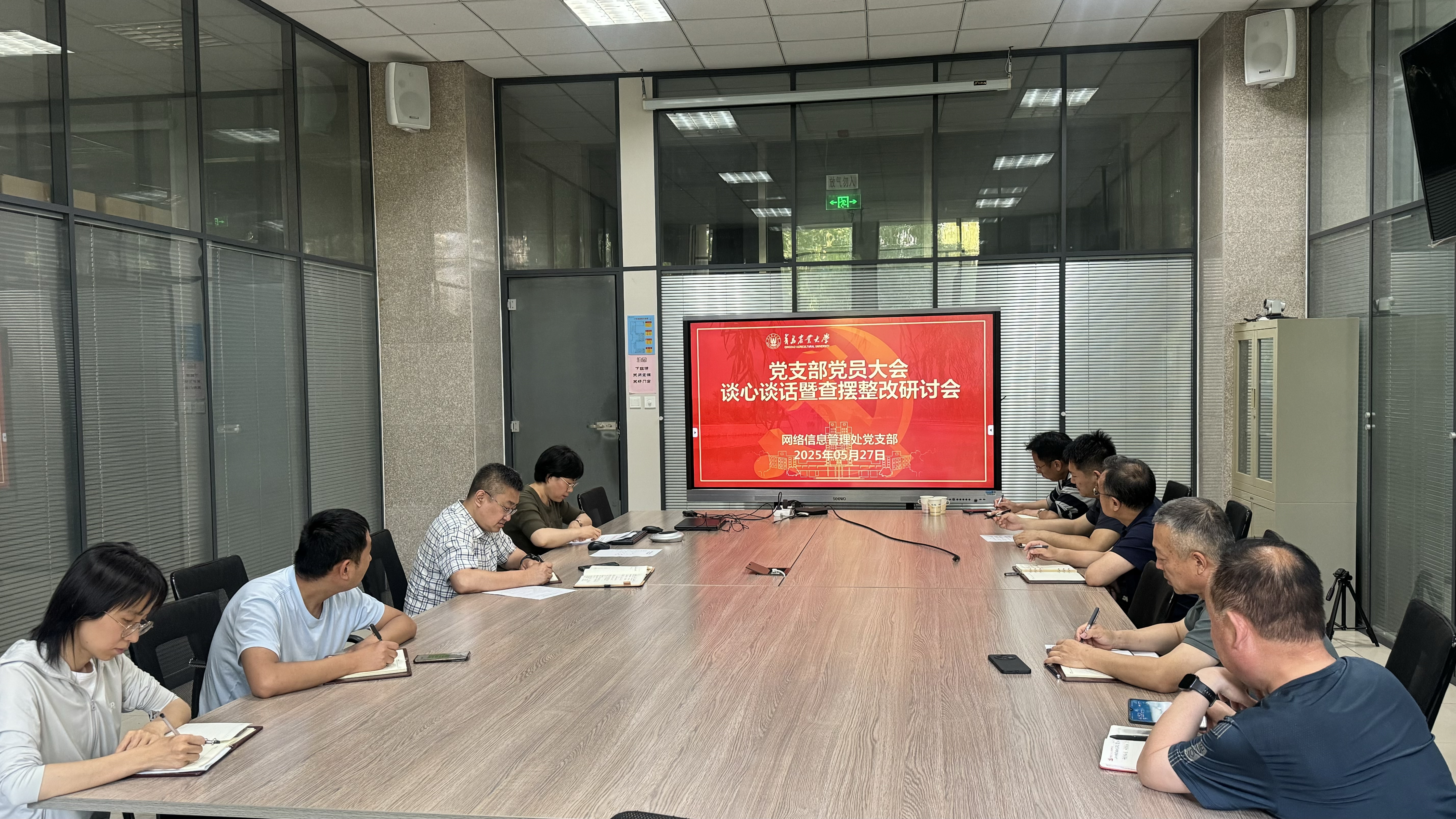 5月27日下午,网络信息管理处党支部召开党员大会,开展深入贯彻中央八项规定精神学习教育谈心谈话,对标对表中央八项规定及其实施细则精神,对照2个问题清单以及典型案例认真查摆存在的问题,并进行整改研讨。会议由党支部书记牟肖光主持,全体党员参加会议。