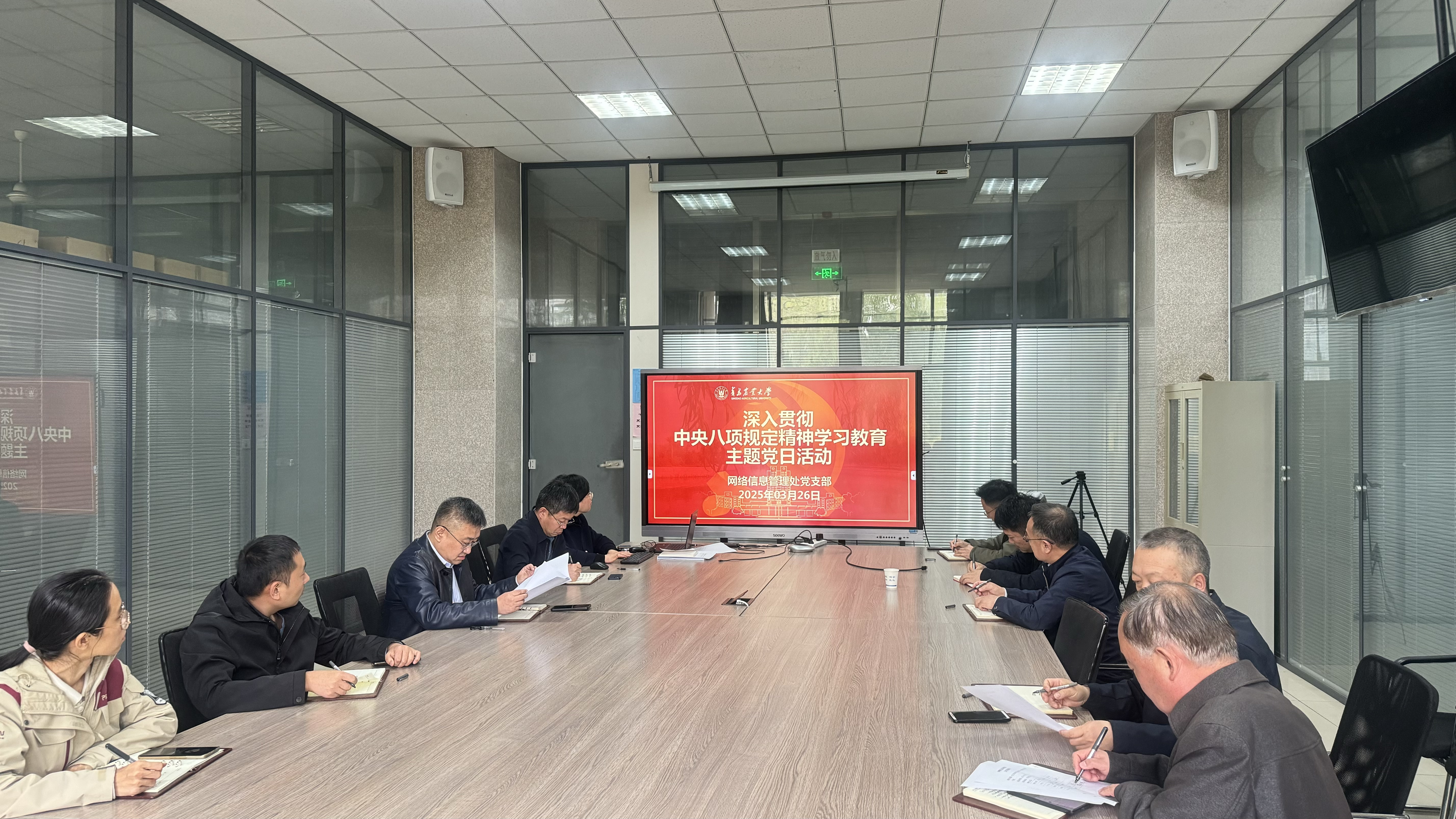 3月26日下午,网络信息管理处党支部开展“深入贯彻中央八项规定精神学习教育”主题党日活动,启动部署中央八项规定精神学习教育。活动由党支部书记牟肖光主持,全体党员参加活动。
