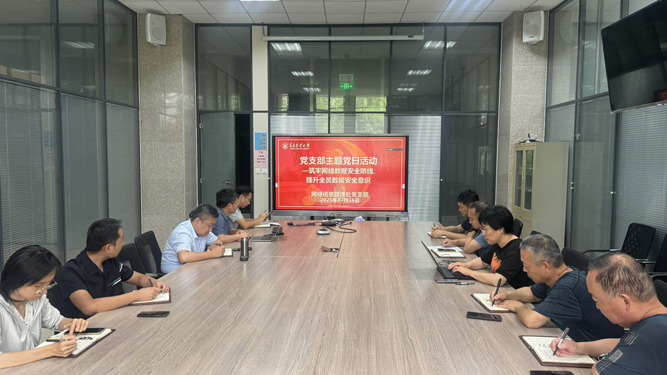 为全面贯彻总体国家安全观,落实国家教育数字化战略行动部署,扎实推进教育数字化工作,提高全体人员数字素养与信息化技能水平,7月16日下午,网络信息管理处党支部开展“筑牢网络数据安全防线,提升全员数据安全意识”主题党日活动。活动由党支部书记牟肖光主持,全体党员参加活动。