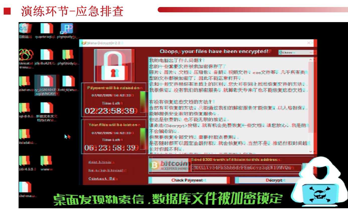 为提升智慧校园网络安全防护水平,强化应对网络安全攻击和威胁处置应对能力,会议组织开展了网络安全应急演练。此次演练由我单位网络安全技术团队模拟发起多种攻击,目的是检验我校网络安全整体防御、应急处置能力。在演练过程中,模拟攻击团队采用了环境渗透、横向攻击、数据勒索、恶意代码植入等多种攻击手段,以测试业务系统的安全性能和技术人员的应急处置能力。
