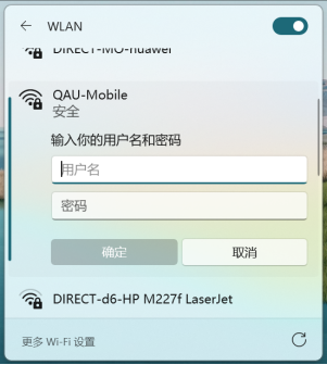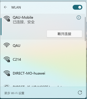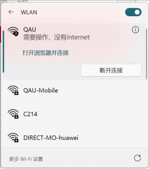 (1)打开设备无线网卡,选择ssid为“qau”/“qau-auto”的无线网络进行连接。