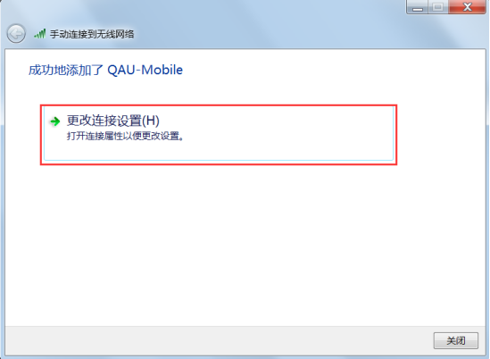 (1)打开设备无线网卡,选择ssid为“qau-mobile”的无线网络进行连接。