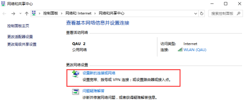 (1)打开“网络和共享中心”--->设置新的连接或网络