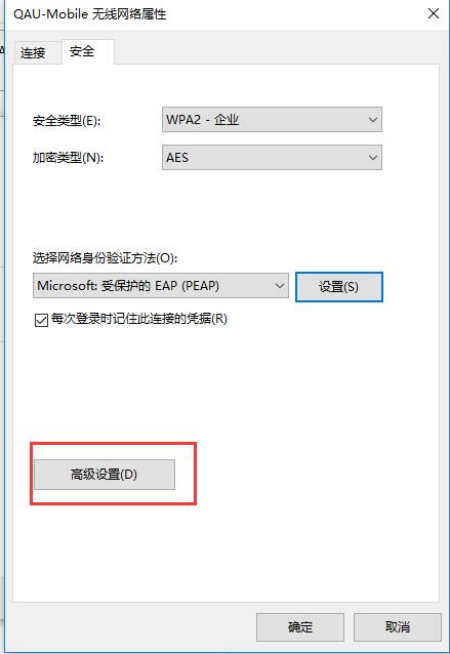 (8)在“qau-mobile无线网络属性”页面中,点击“安全”选项卡中 的“高级设置”
