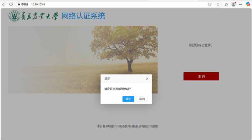 1)用户直接在浏览器中输入10.10.185.8,进入认证界面,点击“注销”按钮,进行注销下线。