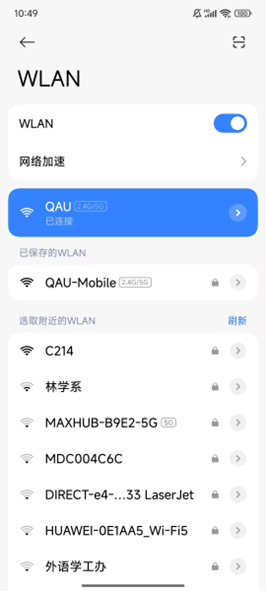 1.城阳校区无线网络标识(ssid)为qau和qau-mobile,平度校区无线网络标识(ssid)为qau和qau-auto。